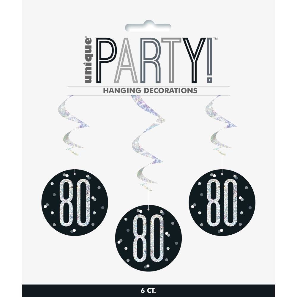 Colgante Decoración 80 Años Negro 81cm 6pcs