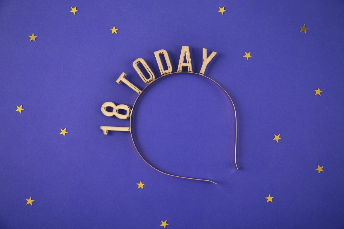 Contenido: Diadema de metal con inscripción 18 Hoy en color oro.
