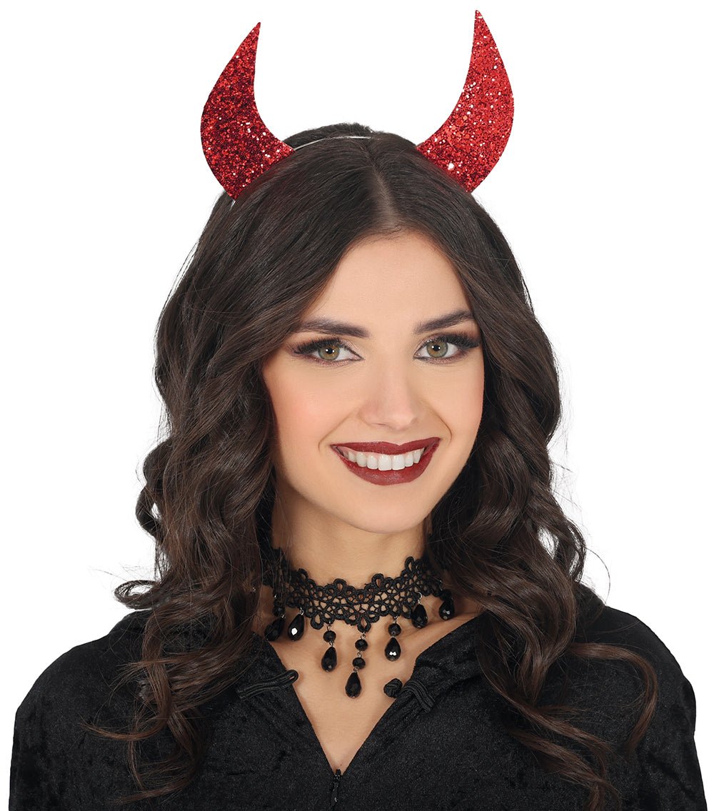 Diadema de Halloween Orejas de Diablo Rojo con Purpurina