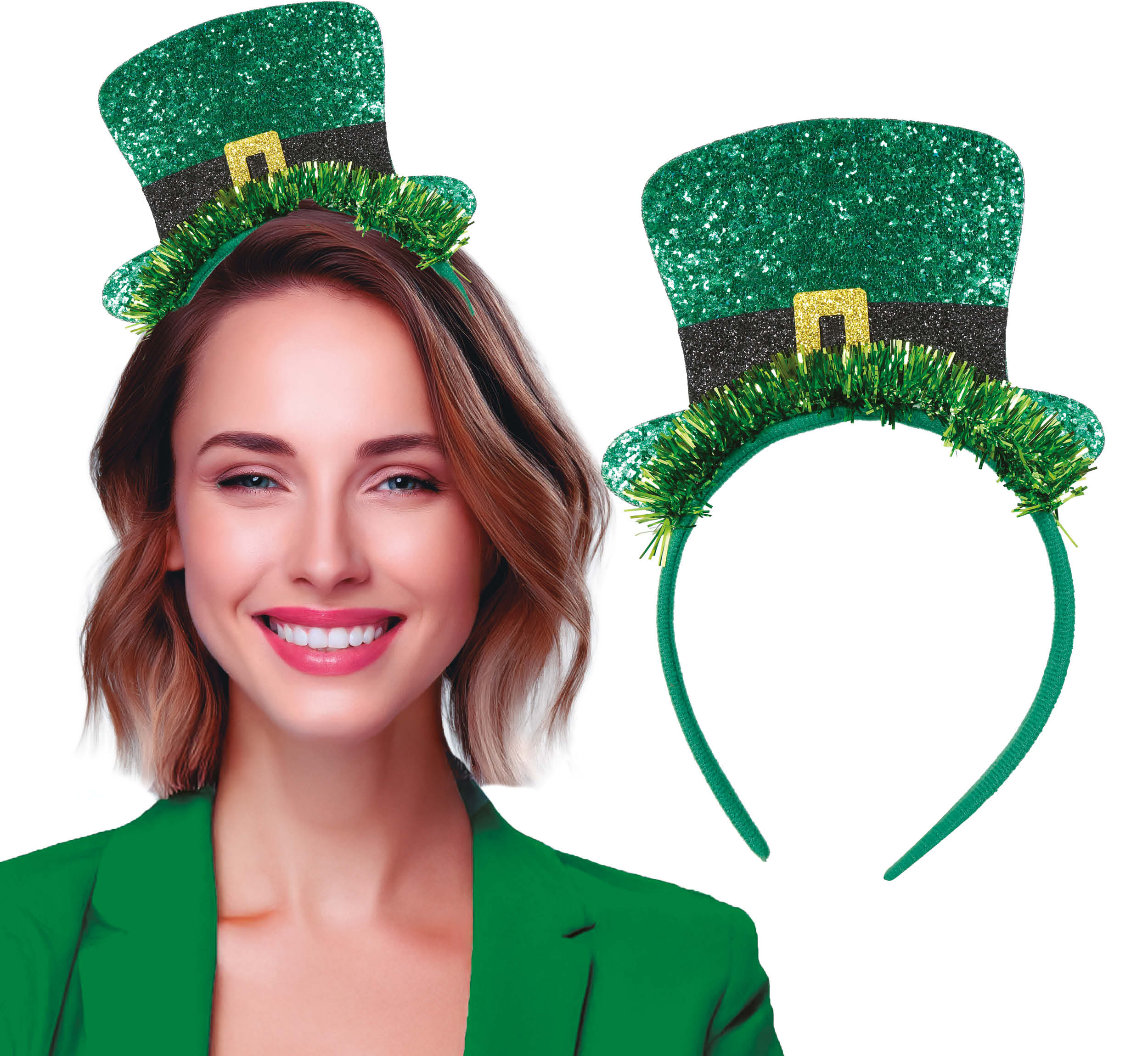 Diadema del Día de San Patricio con purpurina para el sombrero