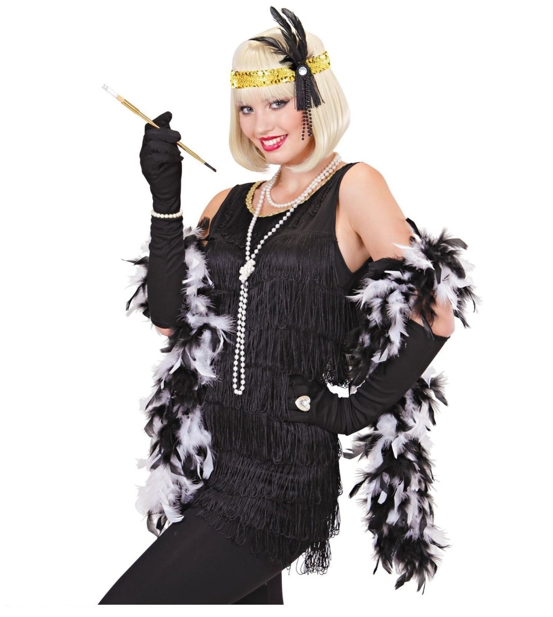 Diadema Oro Lentejuelas Con Plumas