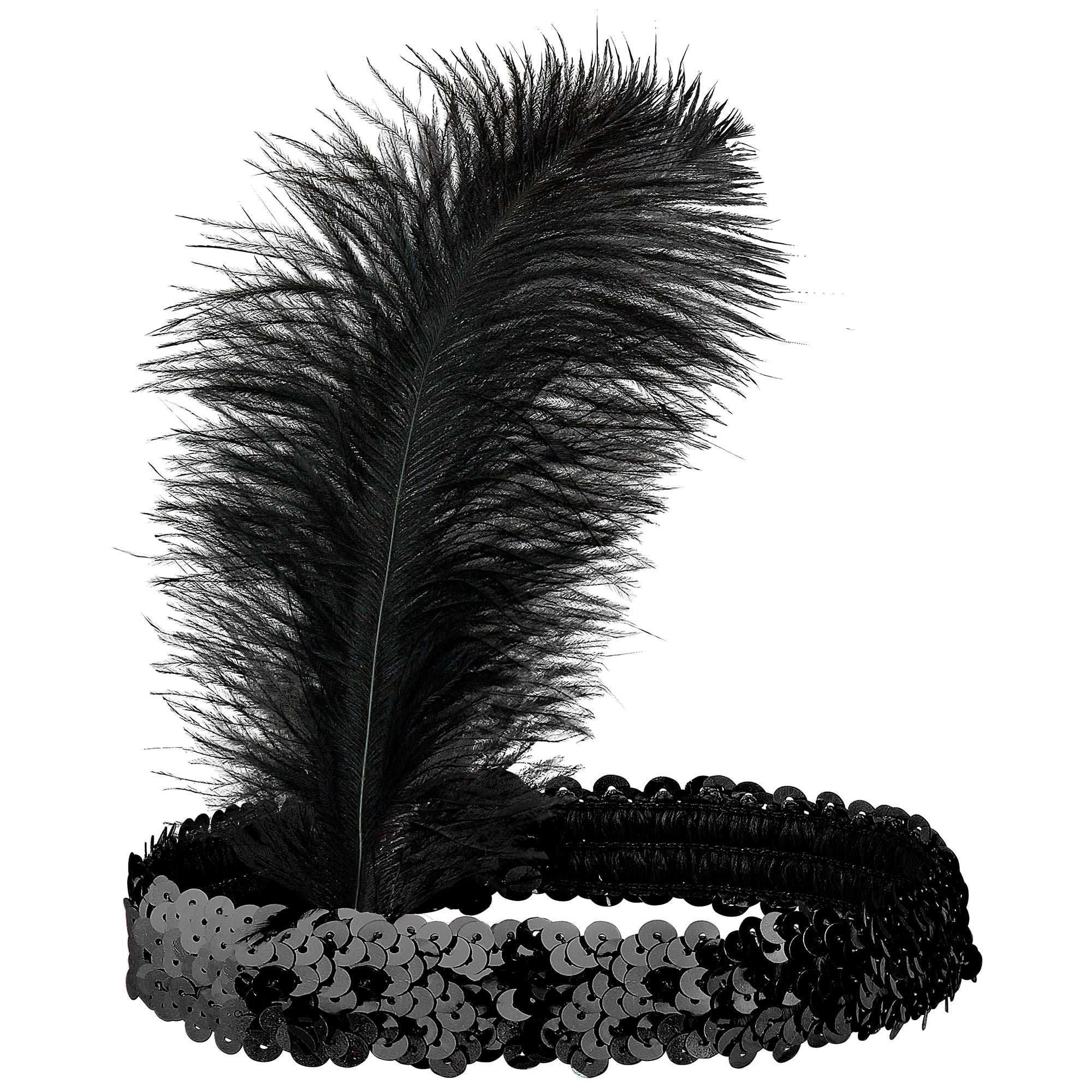 Diadema Negra Lentejuelas Y Pluma