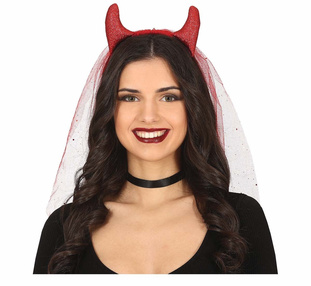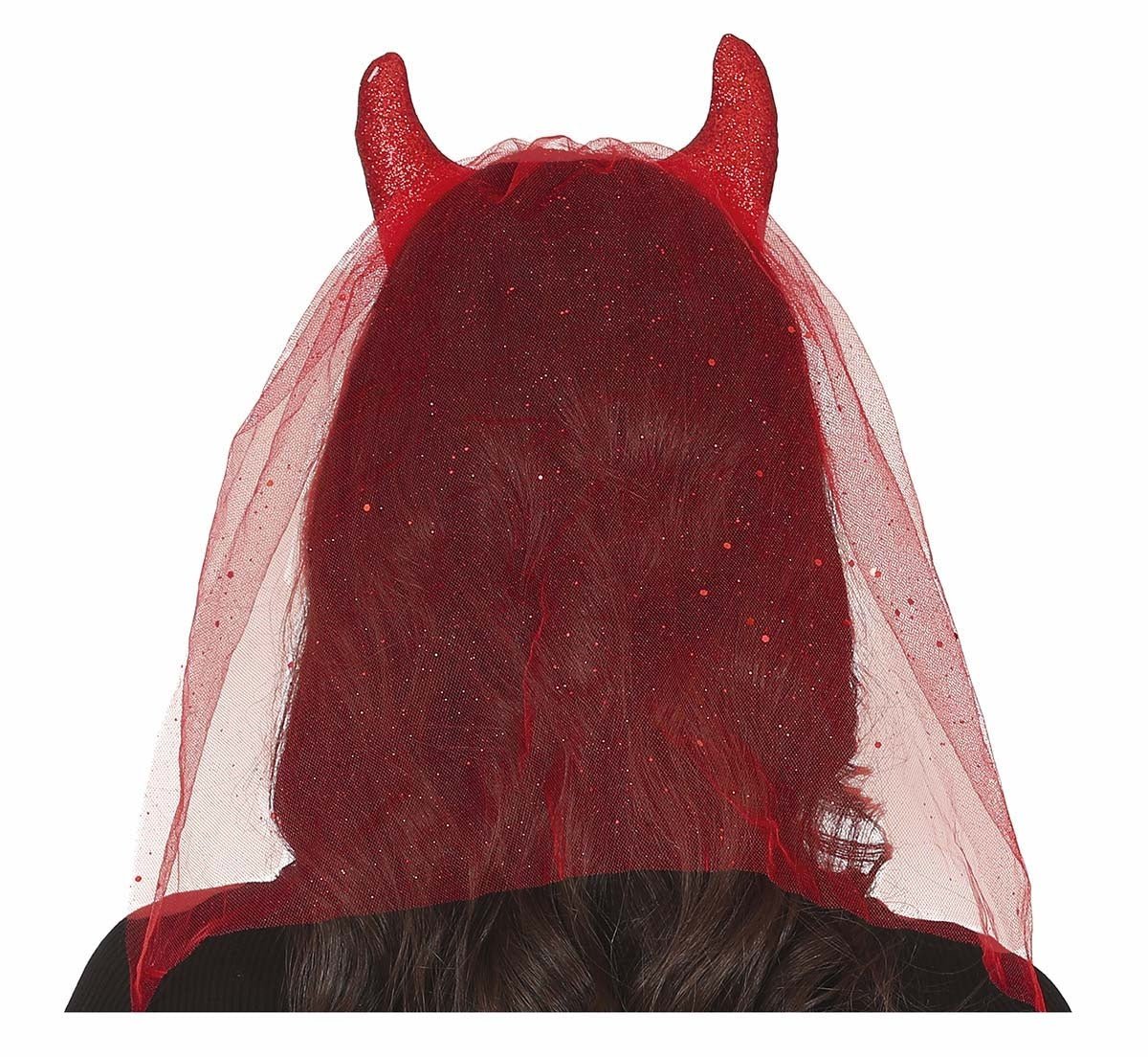 Diadema Roja Diablo Con Velo