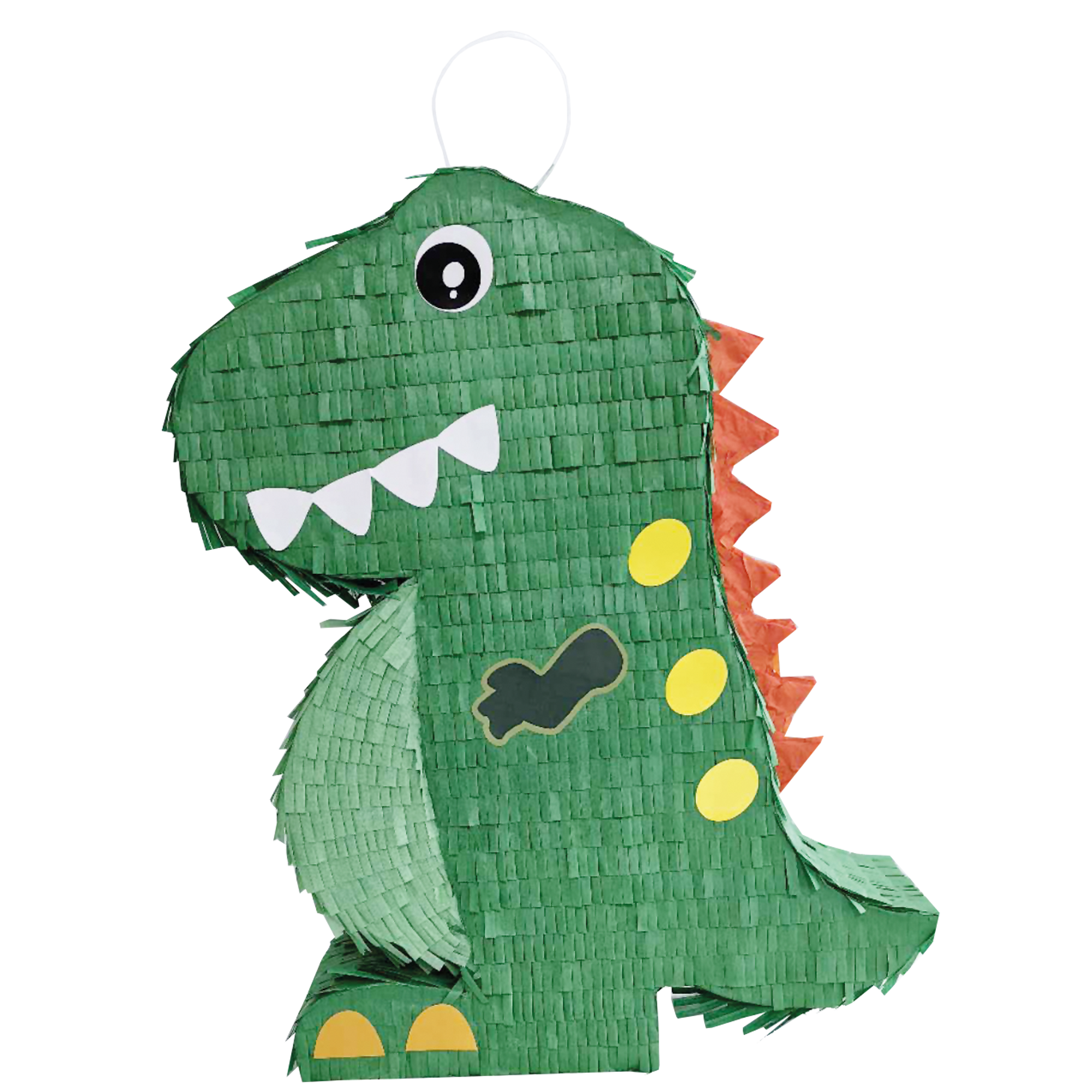 Aporta emoción y diversión extra a cualquier fiesta infantil con esta genial piñata de dinosaurio. Llénala de caramelos o pequeñas sorpresas y deja que los niños intenten romper la piñata. El alegre diseño en papel verde hace que no sólo sea divertido jugar con ella, sino que también atraiga todas las miradas en la decoración de fiestas.
