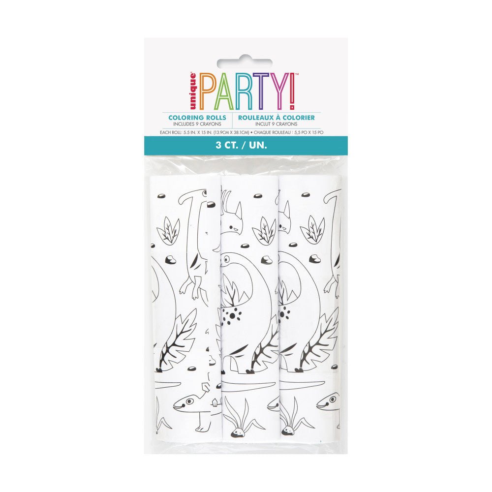 Rollo de Hojas para Colorear Dino con Crayones 3uds.