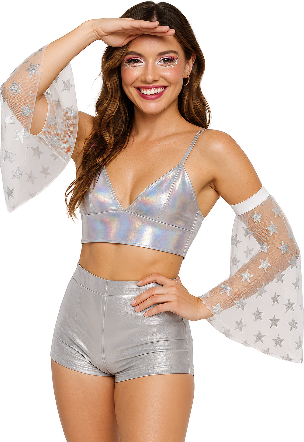 Disco 70S Mangas Mariposa Estrellas Plateadas