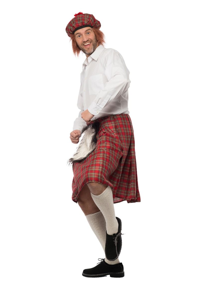 Estilo:Traje tradicional escocés con falda escocesa y detalles a juego
