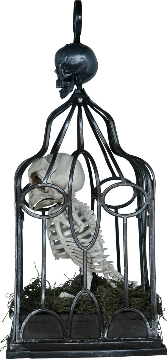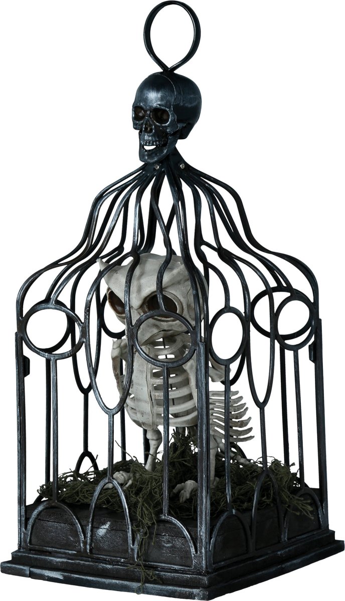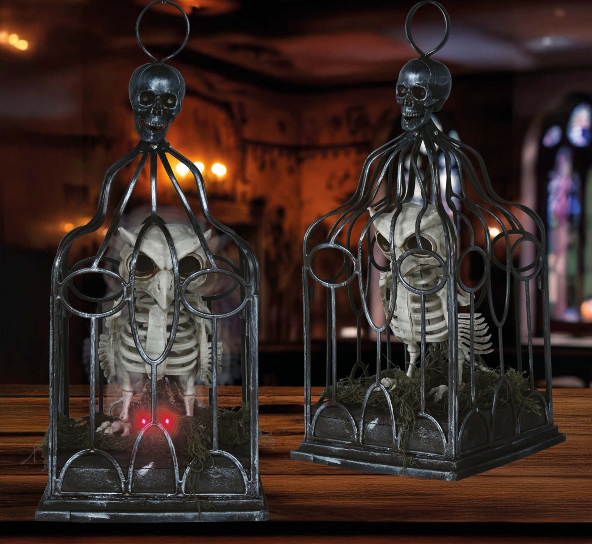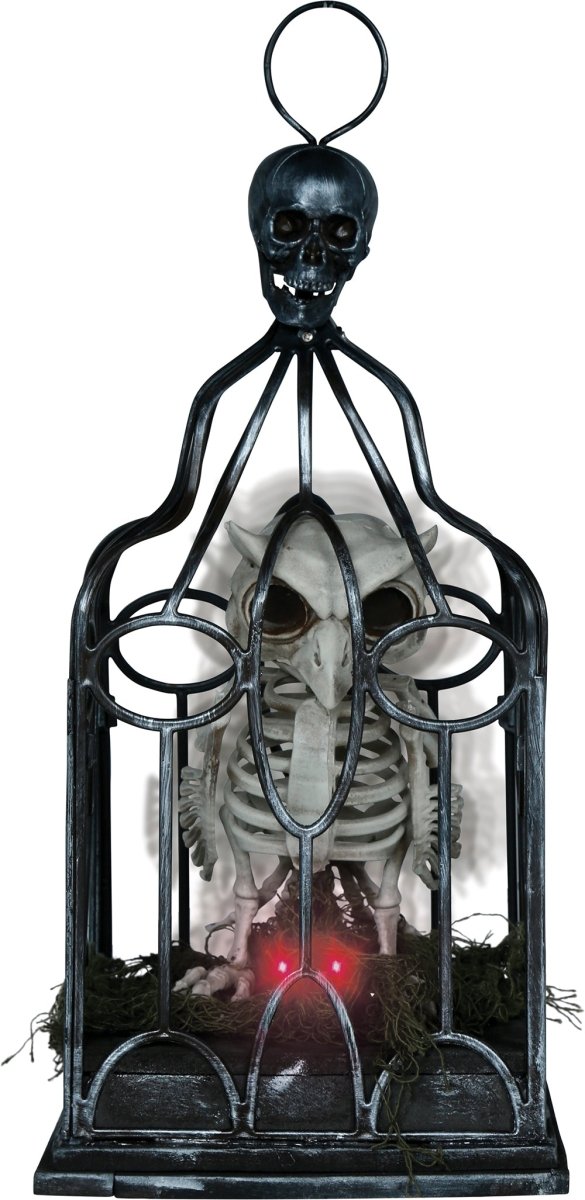 Halloween Búho Esqueleto En Jaula Con Luz, Sonido Y Movimiento