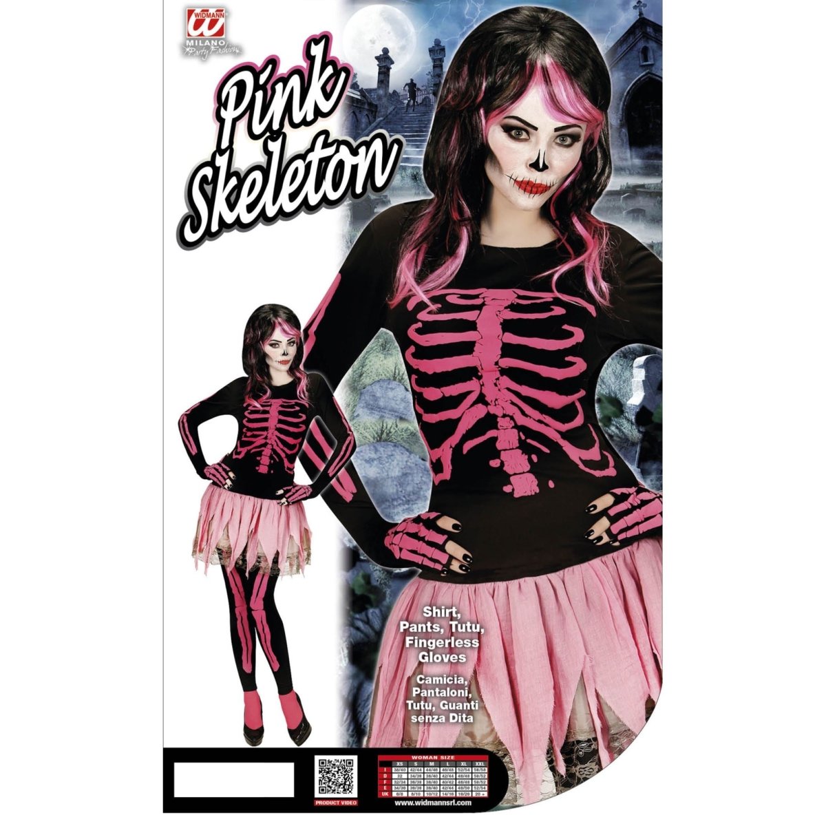 Disfraz de Esqueleto Negro Rosa Mujer 4 piezas