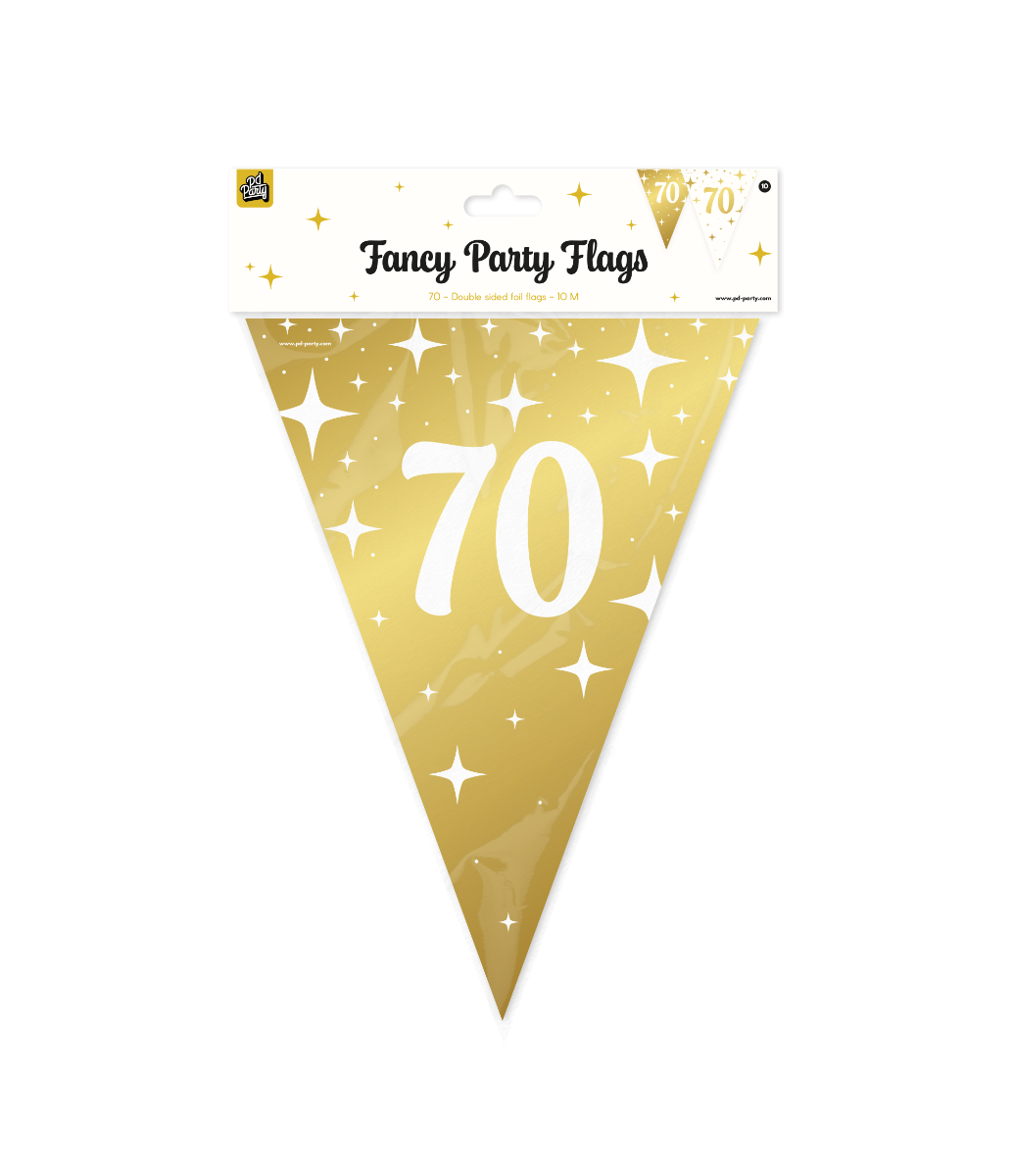 Completa cualquier fiesta con esta festiva Bandera de fiesta elegante de papel de aluminio. La guirnalda de banderas tiene una longitud de la friolera de 10 metros, está hecha de resistente papel de aluminio y está impresa por ambas caras. Como resultado, los colores y los estampados siempre quedan perfectos, independientemente de dónde cuelgues la guirnalda.