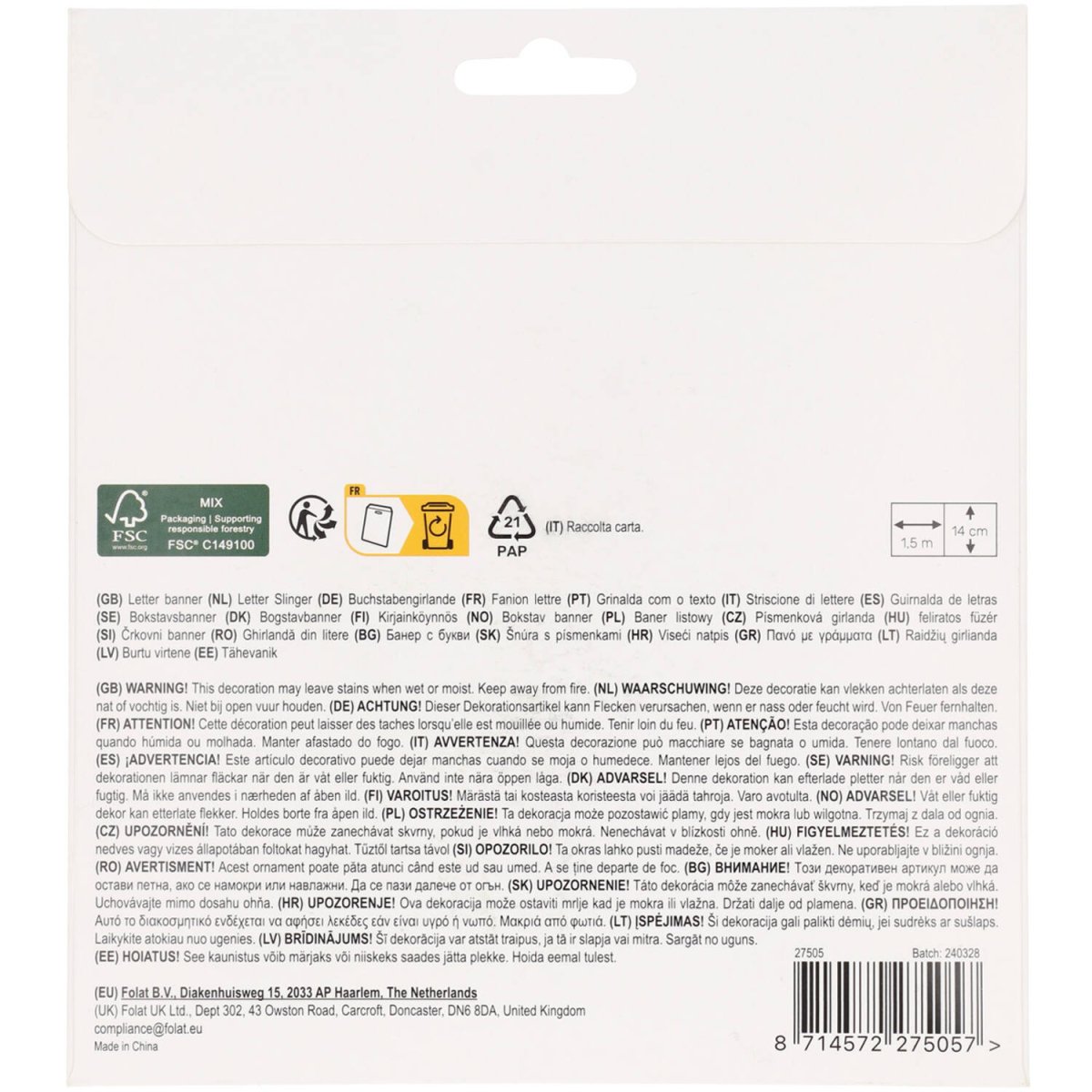 ¡Una auténtica fiesta de caballos! Juego de guirnalda de letras - Caballos felices - 1,5 metros. Contenido: 1 guirnalda de letras en 2 partes. Para utilizar, por ejemplo, en las siguientes fiestas/fiestas Fiesta infantil, Cumpleaños. Esta alegre guirnalda de letras consta de dos partes: una guirnalda con el texto "FIESTA DE CABALLOS" (letras de unos 14 cm de altura) con un caballo a cada lado, y una guirnalda con el texto "FELIZ CUMPLEAÑOS" (letras de unos 14 cm de altura) con un caballo a cada lado. Entre las dos palabras también hay un caballito, y lo gracioso es que entre las letras aparecen más caballitos. Impreso por ambas caras. Todas las piezas se pueden deslizar hacia delante y hacia atrás sobre la cinta verde grisácea. Las cintas de ambas guirnaldas miden 1,7 metros de largo. Este conjunto de guirnaldas de letras pertenece a la colección Happy Horses de Folat. Este artículo está hecho de papel.