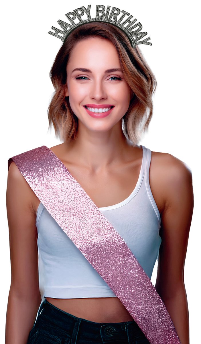 Diadema Feliz Cumpleaños Negro Plata