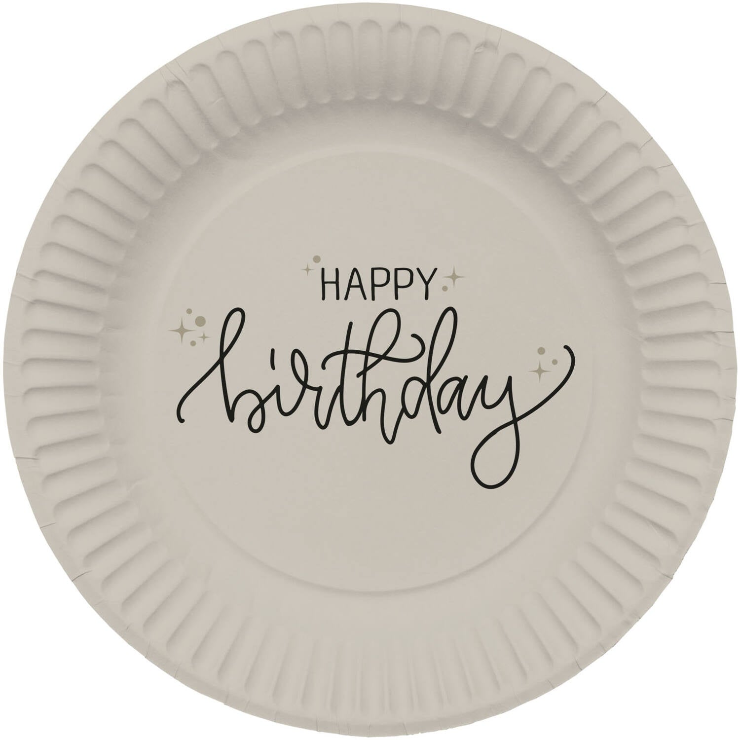 ¡Esto sí que es comida sabrosa! Platos - Crème Noir - 23 cm - 8 uds. Contenido: 8 láminas. Por ejemplo, para utilizar en las siguientes ocasiones de fiesta/fiesta: Cumpleaños. Platos de papel en los que se lee "FELIZ CUMPLEAÑOS". El atractivo diseño con colores crema y negro y la combinación de letras rectas y decorativas crean un aspecto elegante en cualquier mesa de fiesta. Adecuado para cumpleaños durante todo el año. Estas placas pertenecen a la colección Crème Noir de Folat. Este artículo está fabricado con papel FSC.