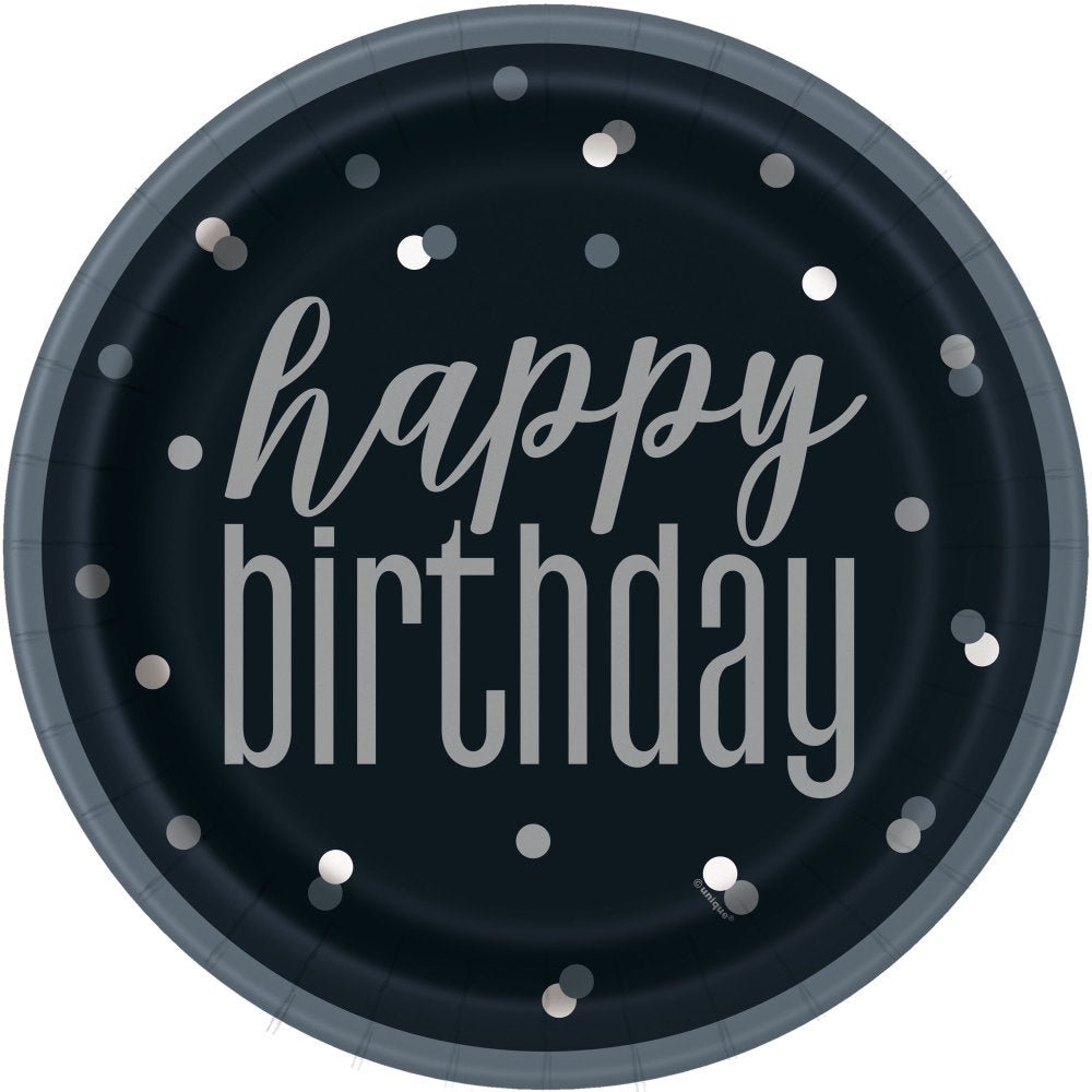 Platos Feliz Cumpleaños Lunares Negros 22.2cm 8pcs