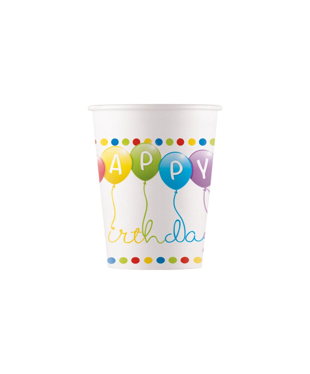 Vaso Feliz Cumpleaños Papel 200ml 8 piezas