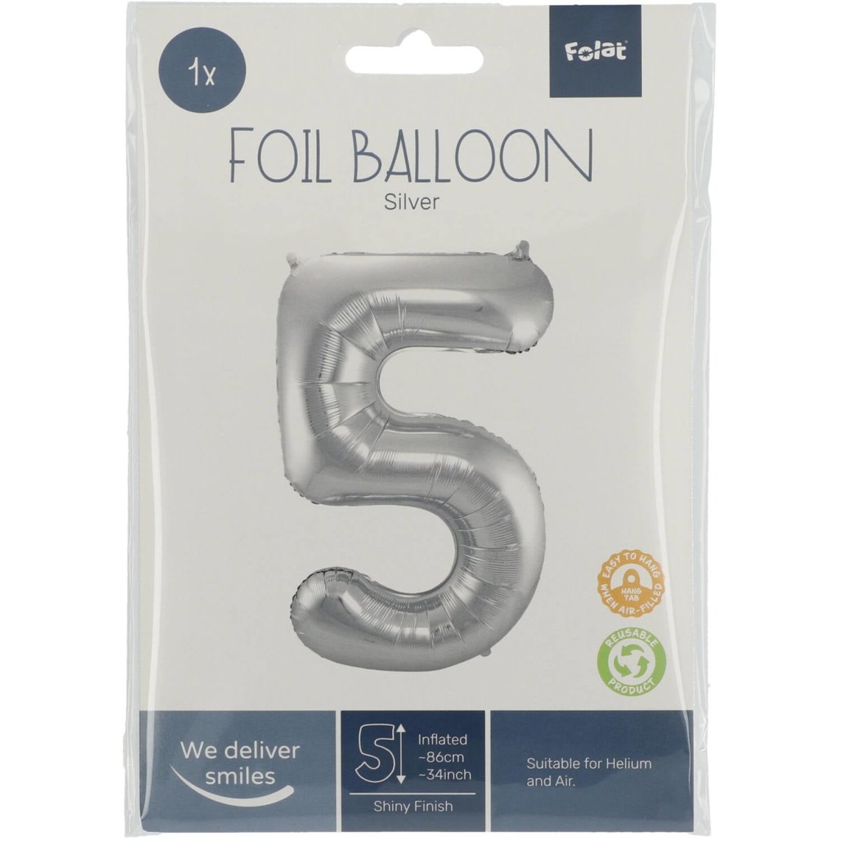 Globo Foil Figura 5 Plateado Metalizado XL 86cm vacío