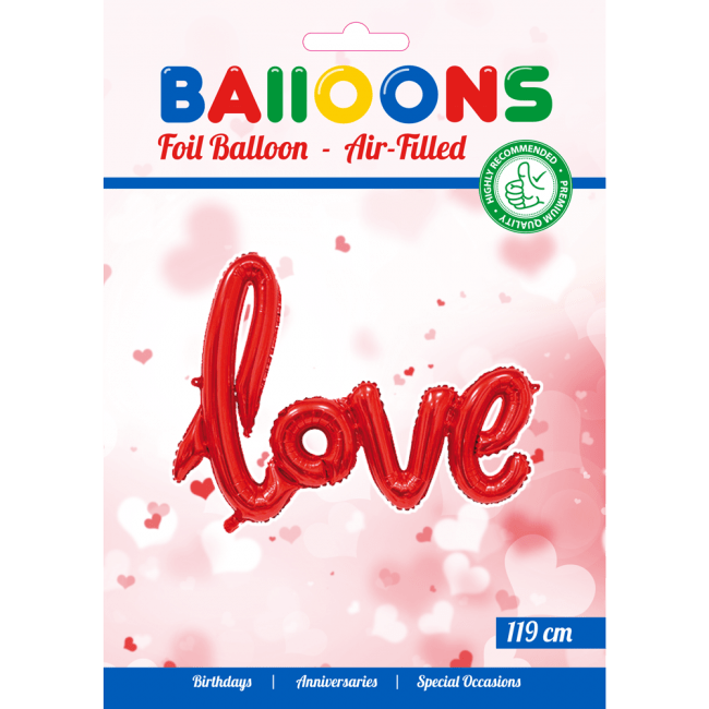 Contenido del envase: Globo de foil Love Rojo 1,19m vacío