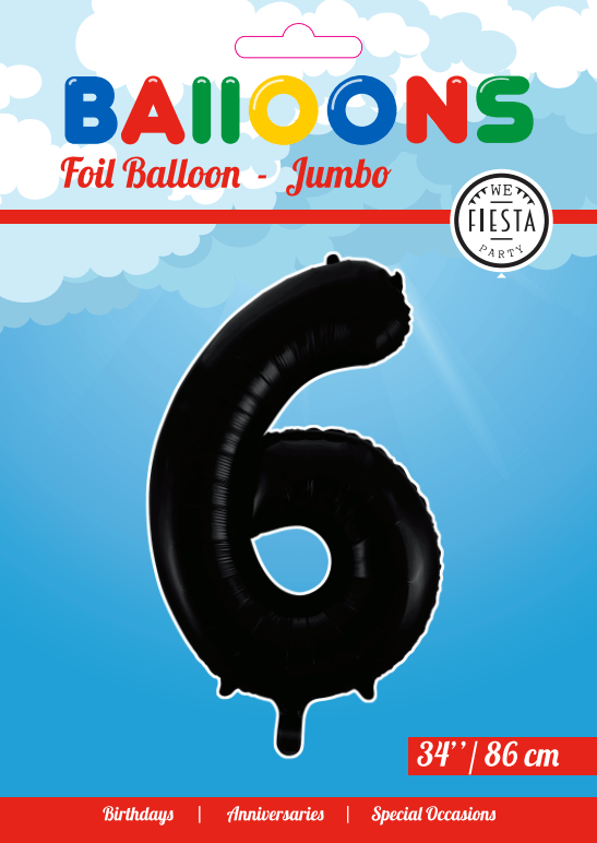 Globo Foil Figura 6 Negro XL 86cm vacío