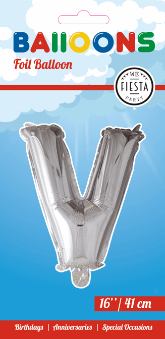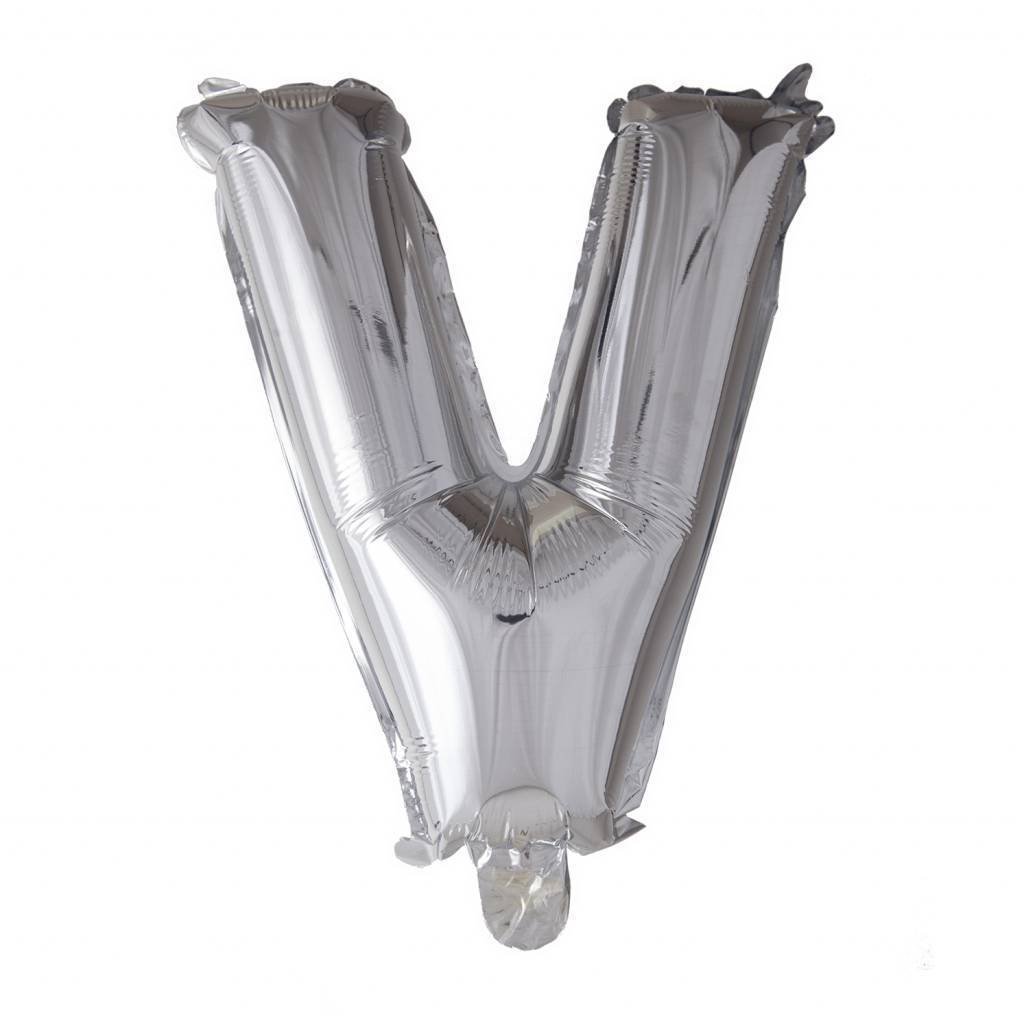 Globo Letra V Plata 41cm con Pajita