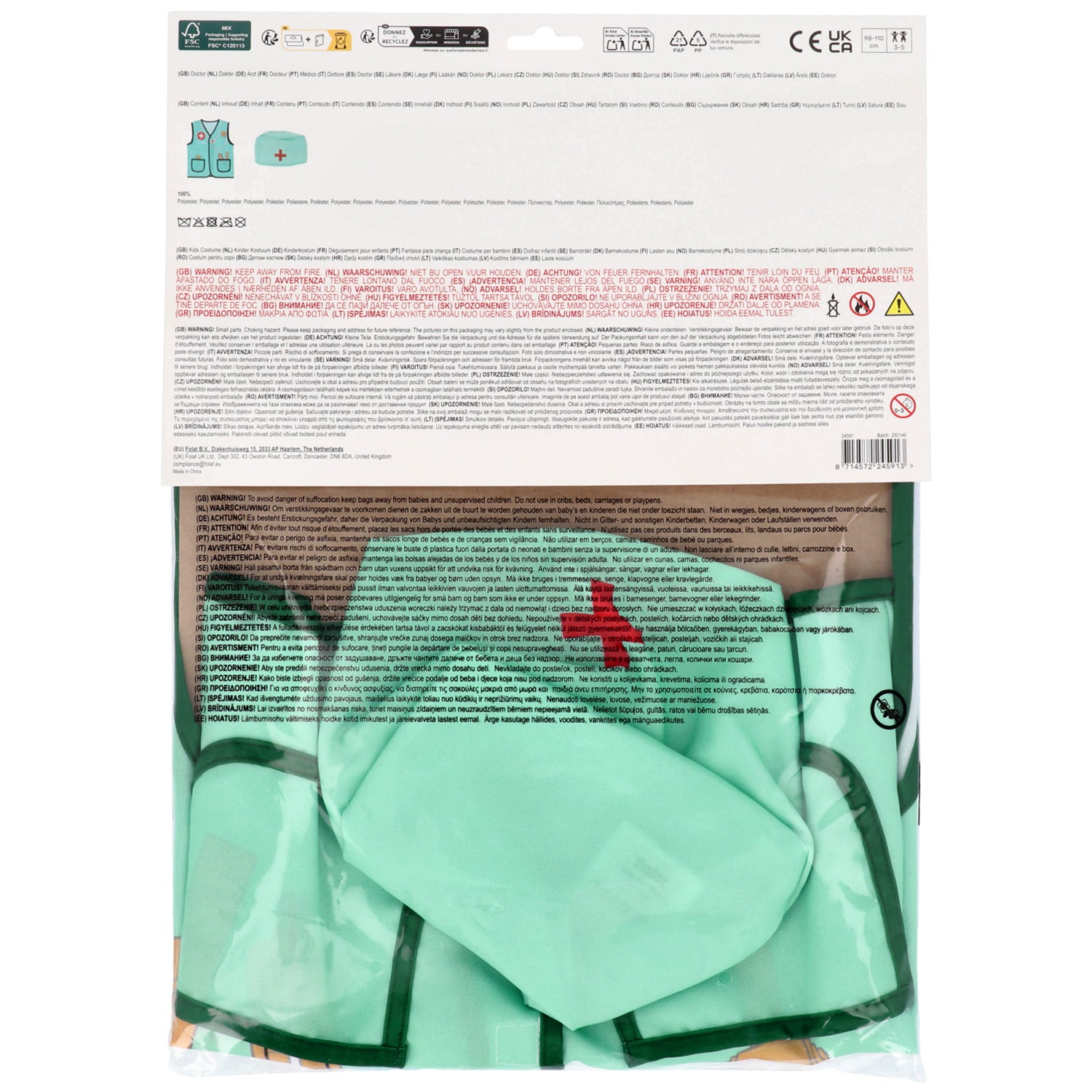 ¡Médico en la habitación! Con este Juego de Disfraces de Médico todos los niños estarán listos para examinar y ayudar a los pacientes. Perfecto para fiestas infantiles, fiestas de disfraces y carnaval. El set incluye un chaleco de médico verde claro y un gorro quirúrgico a juego, ambos con detalles médicos reconocibles.