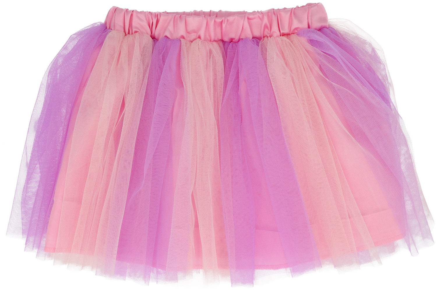 Acabada con tiras plisadas de tul en lila y rosa pálido, que dan un efecto juguetón y delicado.