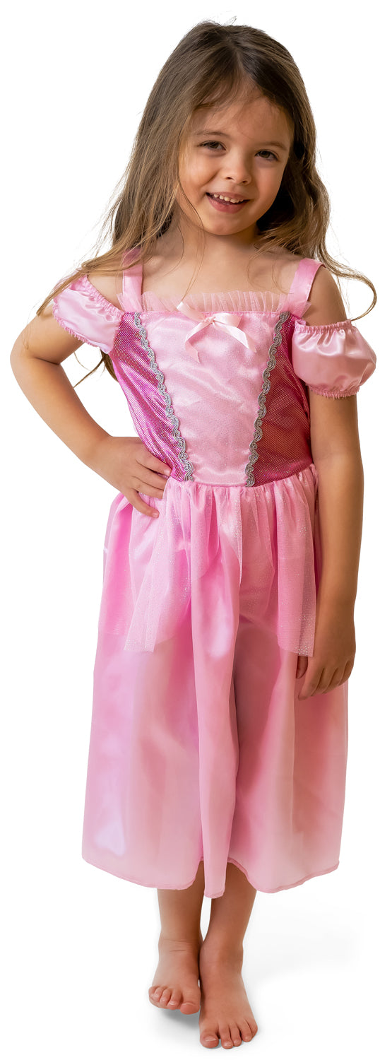 El Vestido de princesa rosa está pensado para cualquier niña que quiera transformarse en una auténtica princesa. Fabricado con un tejido similar al satén, el vestido se coloca fácilmente sobre la cabeza y resulta muy cómodo de llevar. Los elegantes detalles y el acabado juguetón hacen que este vestido sea ideal para fiestas, fiestas de disfraces y juegos de fantasía.