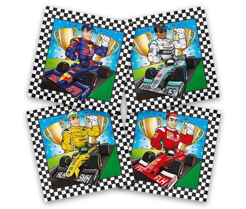 Servilletas Fórmula 1 33x33cm - 20 unid. Contenido: 20 servilletas. Color: Multicolor. Tema del producto: Fórmula. Por ejemplo, para utilizar en las siguientes fiestas: fiesta infantil. Una servilleta mide 33x33cm. El artículo es de papel.