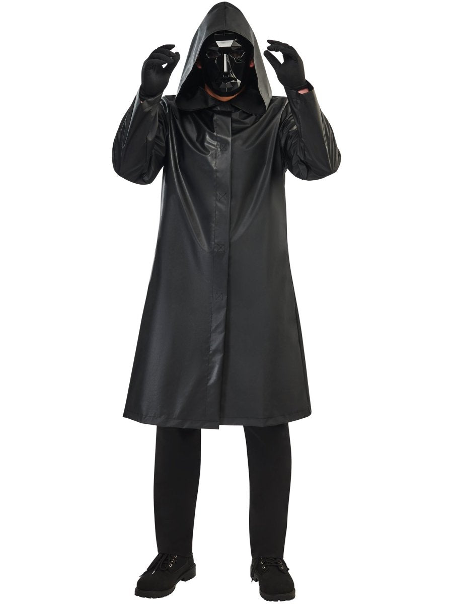Métete en el papel del misterioso y poderoso Hombre de Frente de la exitosa serie Juego de Calamares con este lujoso disfraz. Perfecto para Halloween, eventos de cosplay o fiestas temáticas en las que quieras causar una impresión inolvidable.