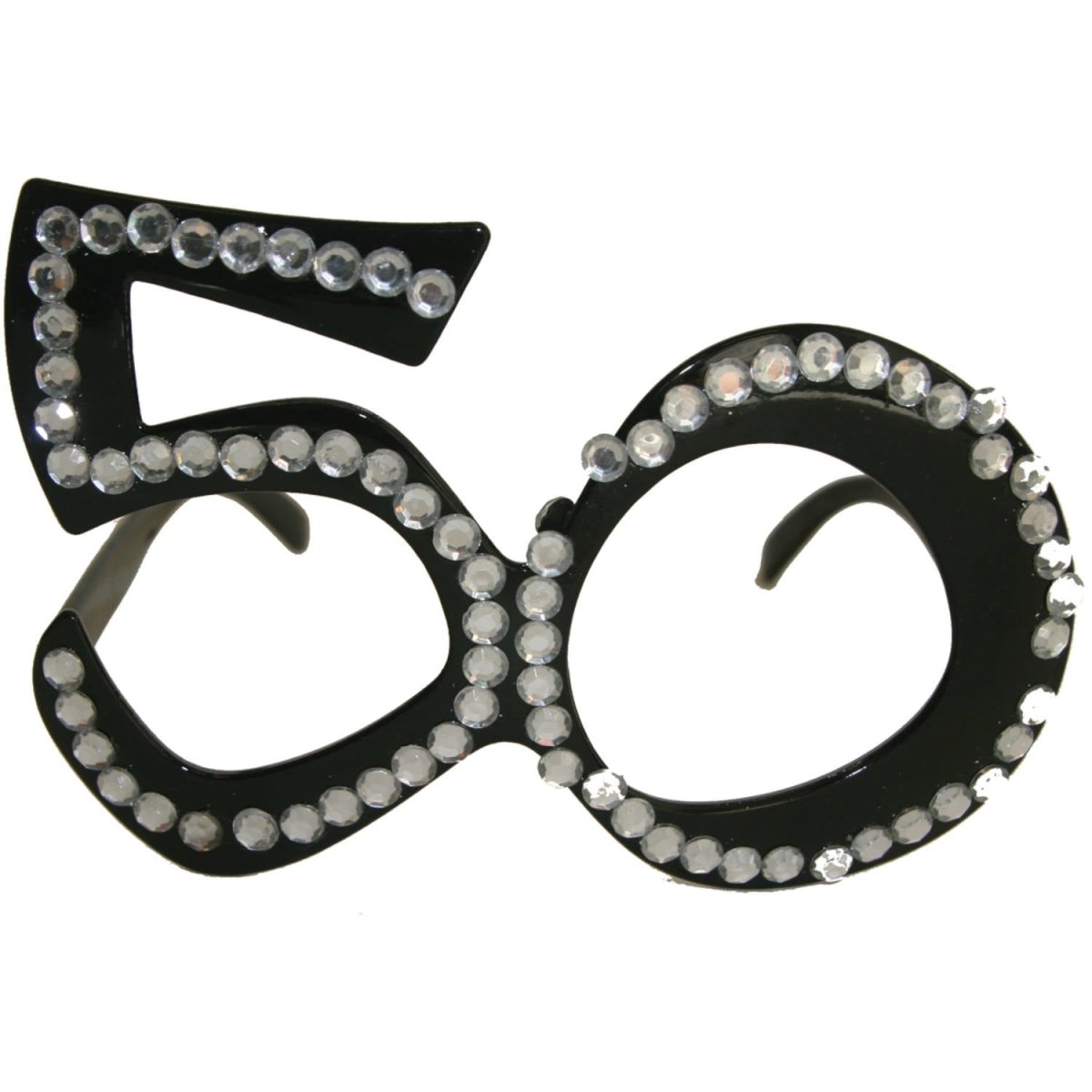 Gafas negras 50 años con montura de diamantes. Contenido: 1 par de gafas. Color: Negro. Para usar, por ejemplo, en las siguientes fiestas: cumpleaños. Destinatarios: adultos. Estas gafas son de plástico.