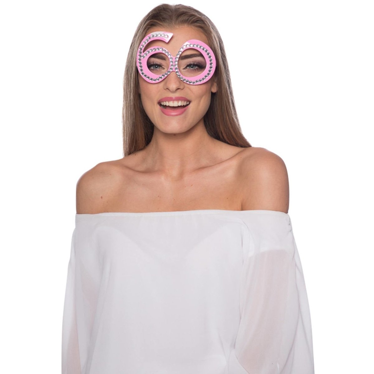 Gafas 60 Años Montura Diamante Rosa. Contenido: 1 par de gafas. Color: Rosa. Para usar, por ejemplo, en las siguientes fiestas: cumpleaños. Destinatarios: adultos. Estas gafas son de plástico.