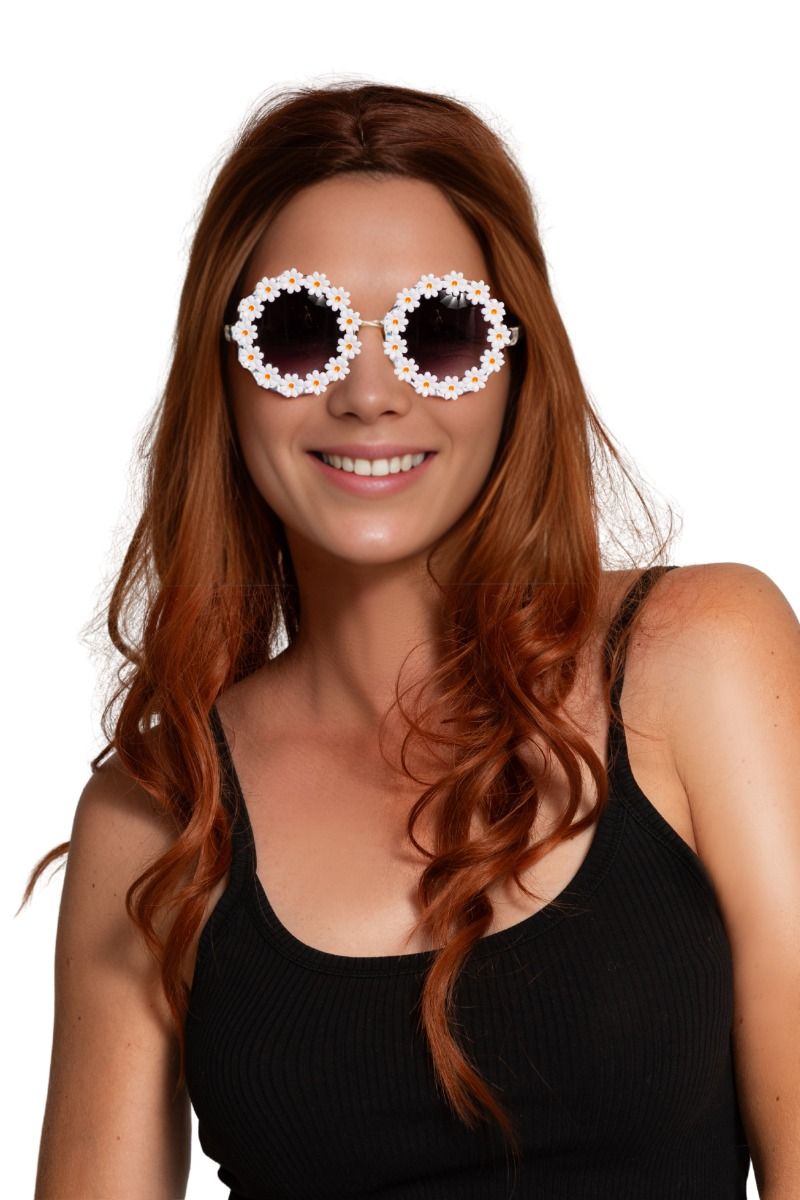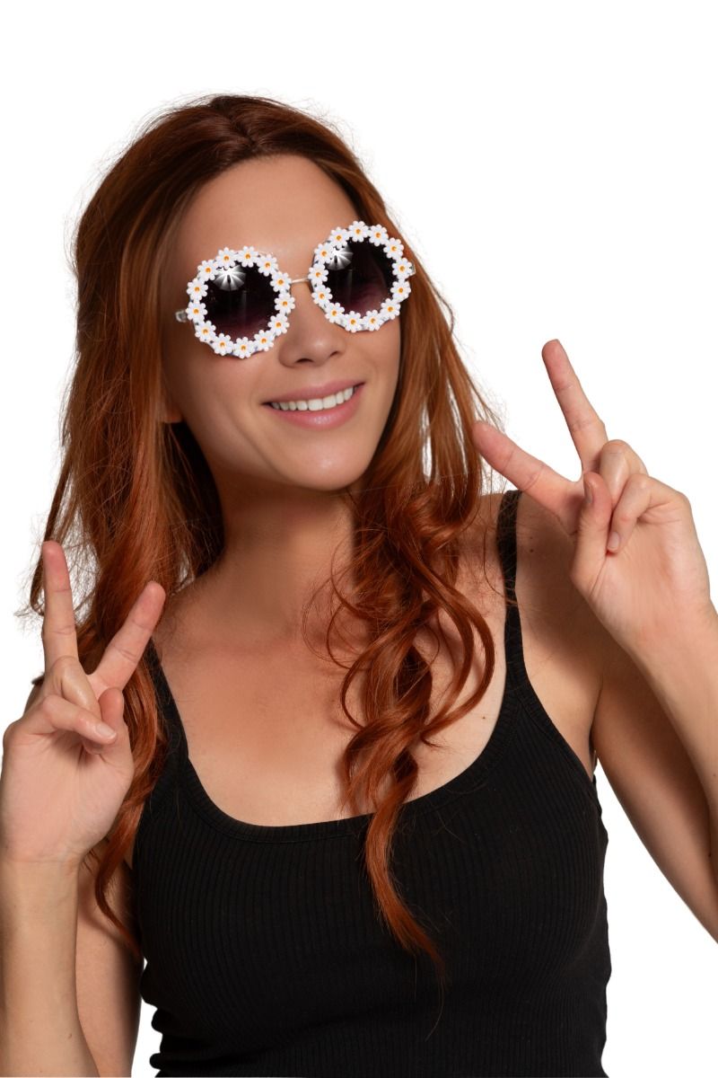 Estas gafas con flores blancas son un alegre accesorio hippie perfecto para carnaval, fiestas de disfraces y fiestas de disfraces. Ideales para completar un atuendo flower power.
