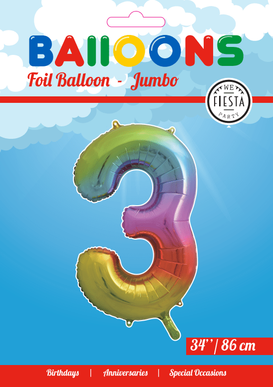 Globo Flotante Figura 3 Arco Iris XL 86cm vacío