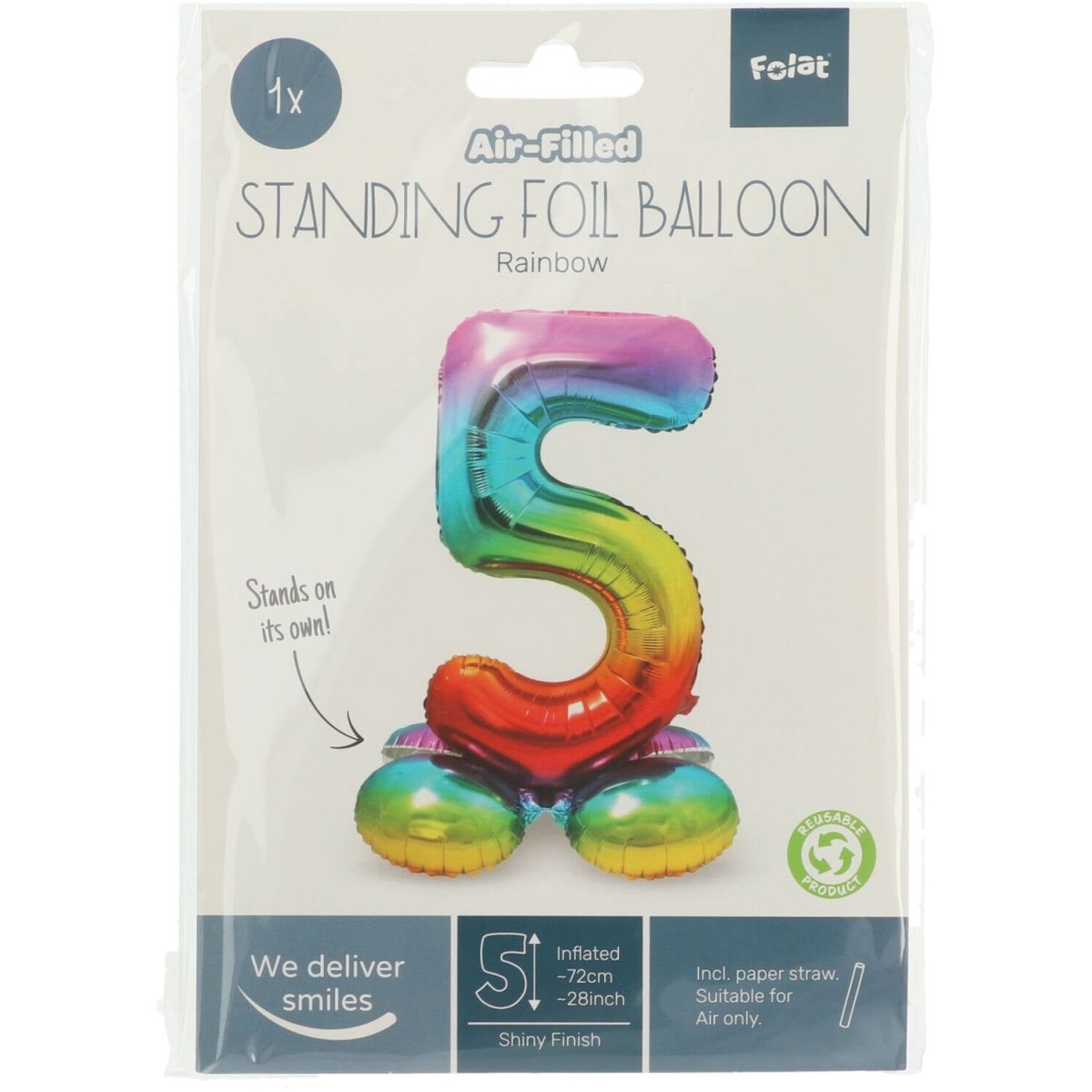 Globo Foil Figura 5 Arco Iris con soporte 72cm