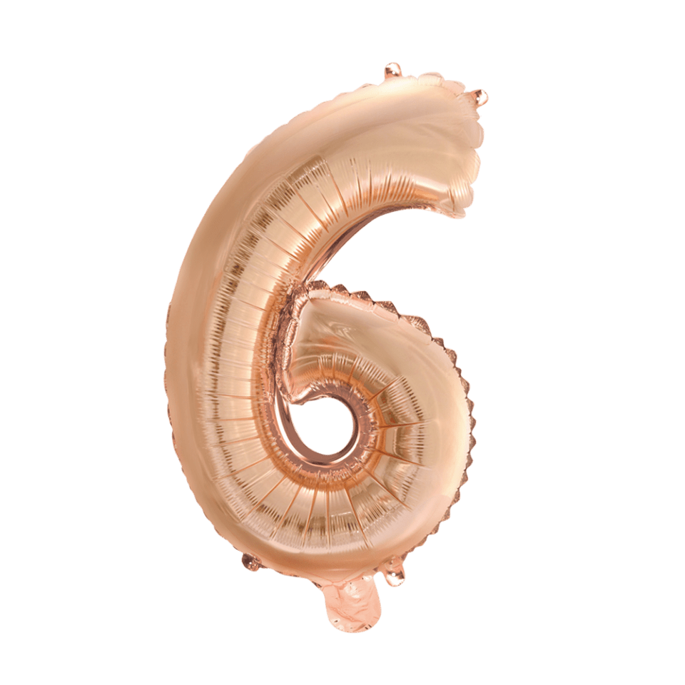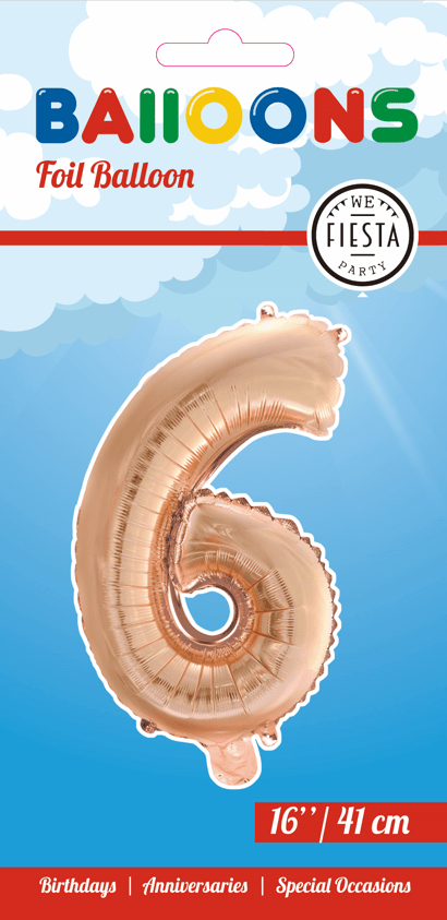 Globo Foil Figura 6 Oro Rosa 41cm con pajita