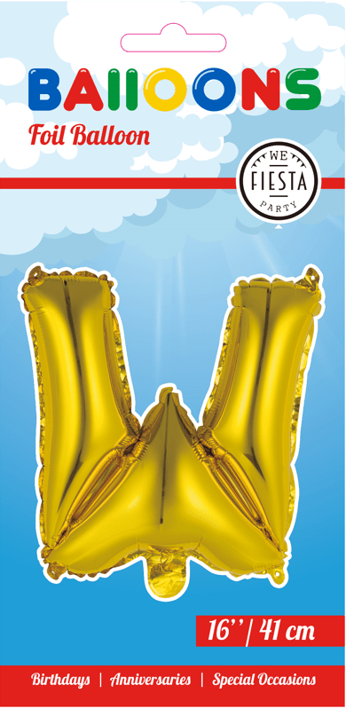 Globo Letra W Oro 41cm con Pajita