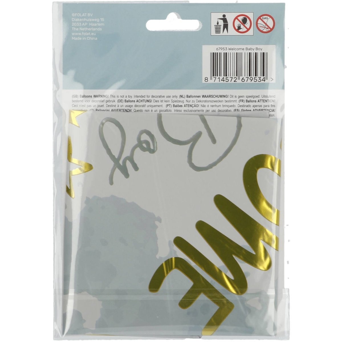 Globo de Helio Bienvenido Bebé Azul Vacío 45cm