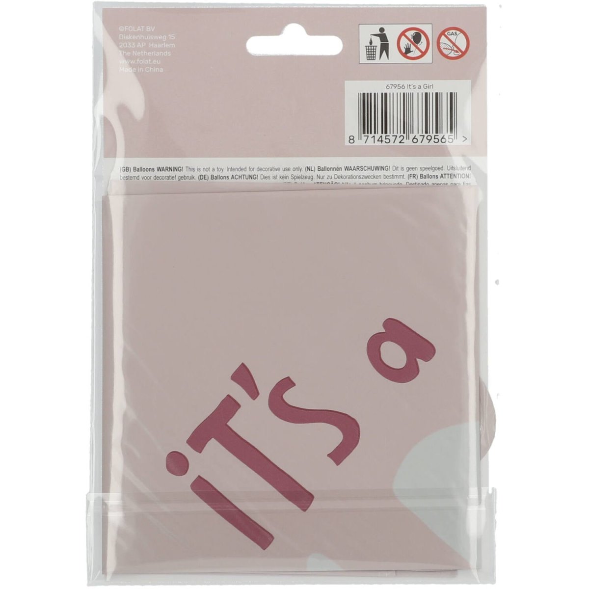 Globo de Helio Corazón Es Una Niña Rosa Vacío 45cm