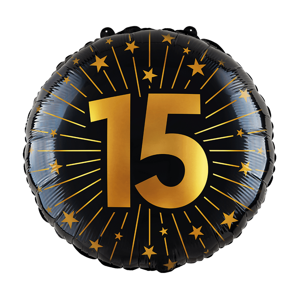 15 Años Globo de Helio Oro Negro Vacío 45cm