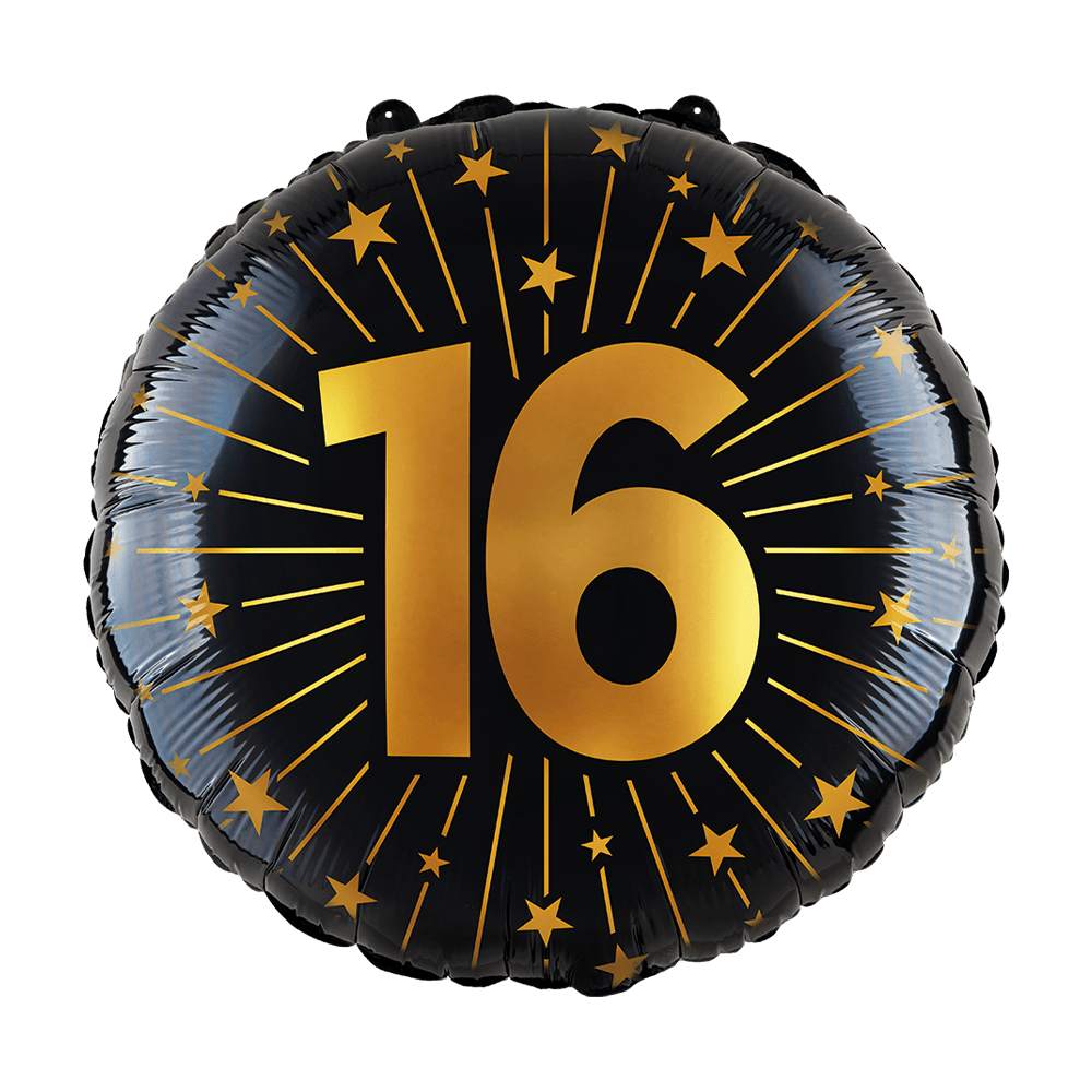 16 Años Globo de Helio Negro Oro Vacío 45cm