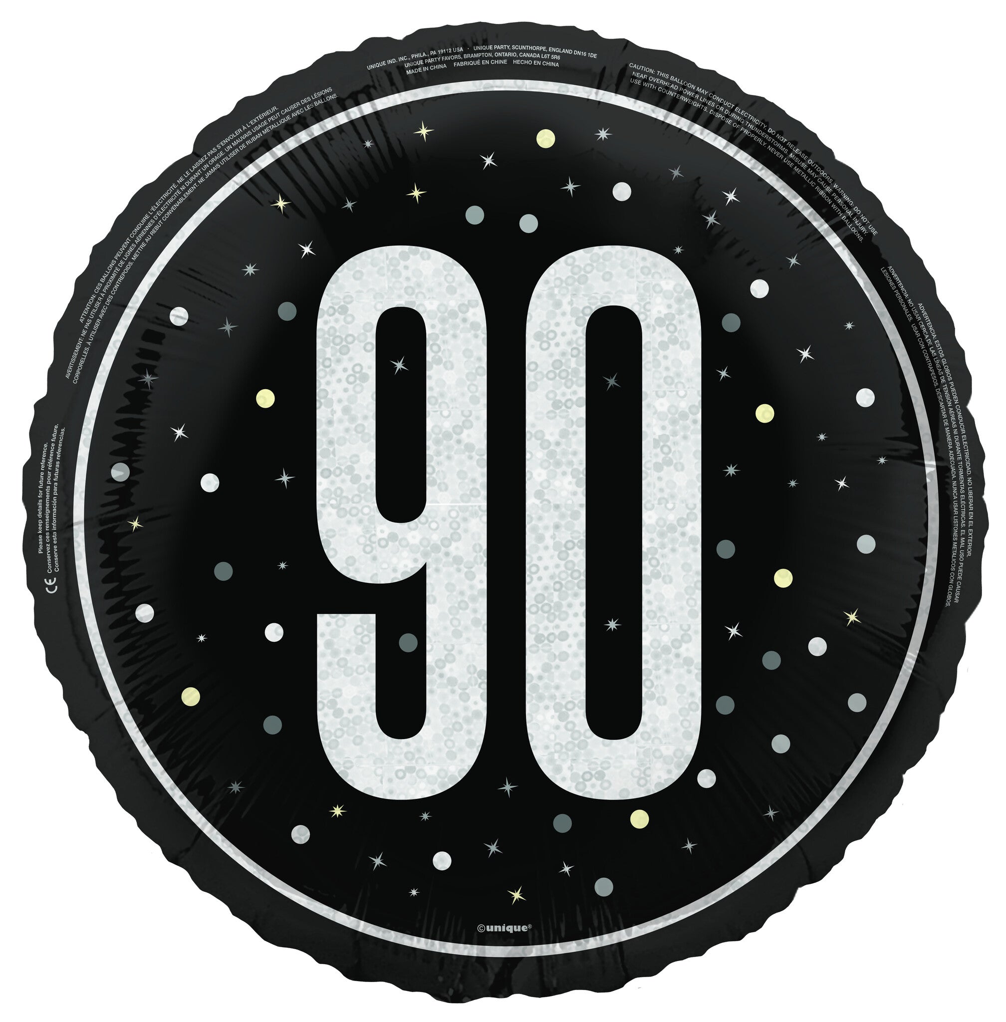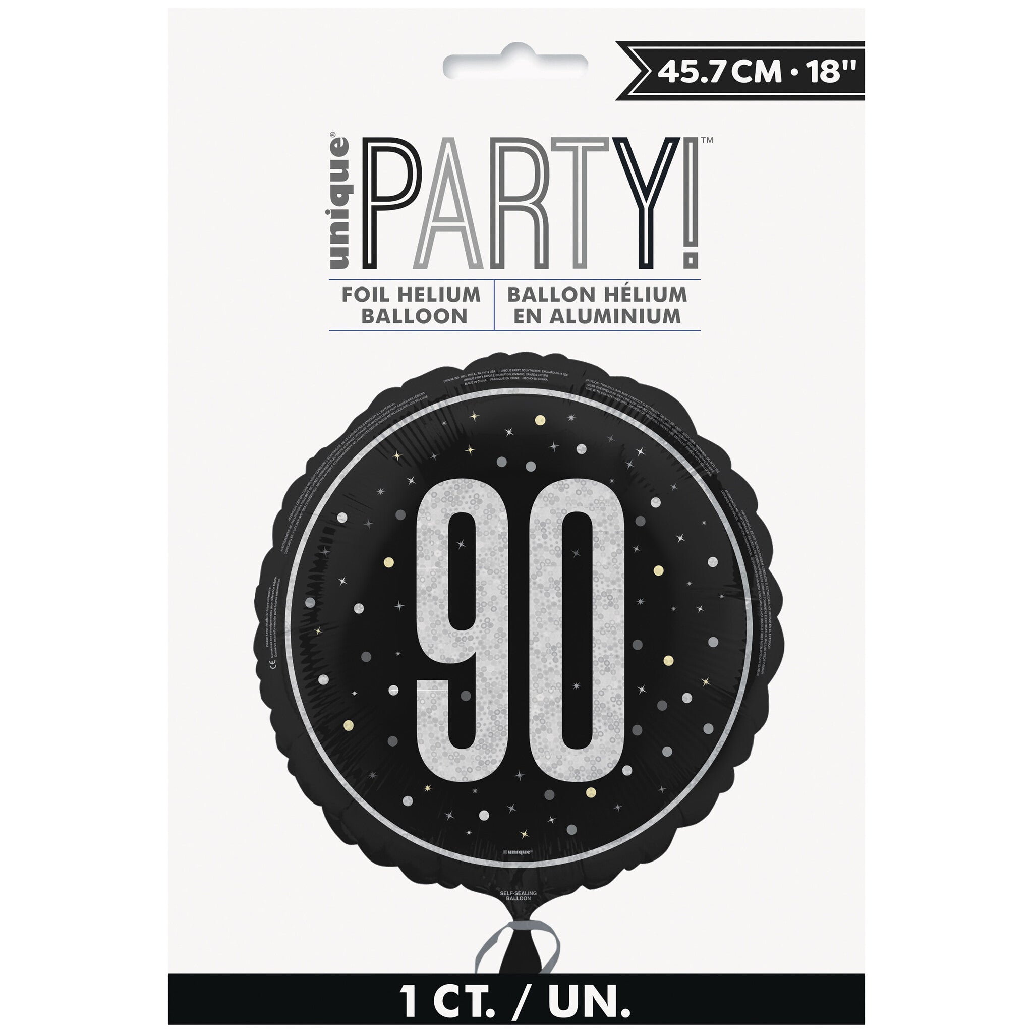 90 Años Globo de Helio Negro Vacío 45cm