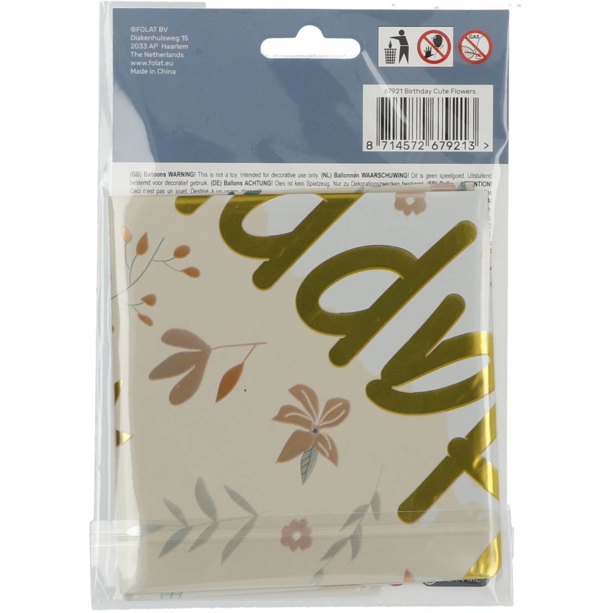 Globo de Helio Feliz Cumpleaños Flores Rosa Oro Vacío 45cm