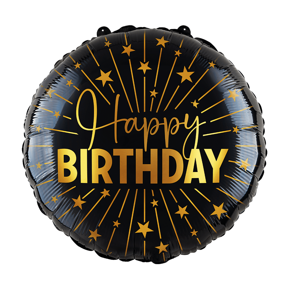 Globo de Helio Feliz Cumpleaños Negro Oro Foil Vacío 45cm