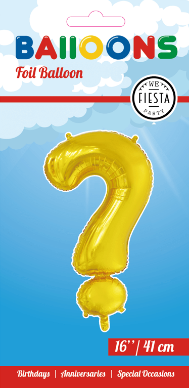 Globo de foil Signo de interrogación ? Oro 41cm con pajita