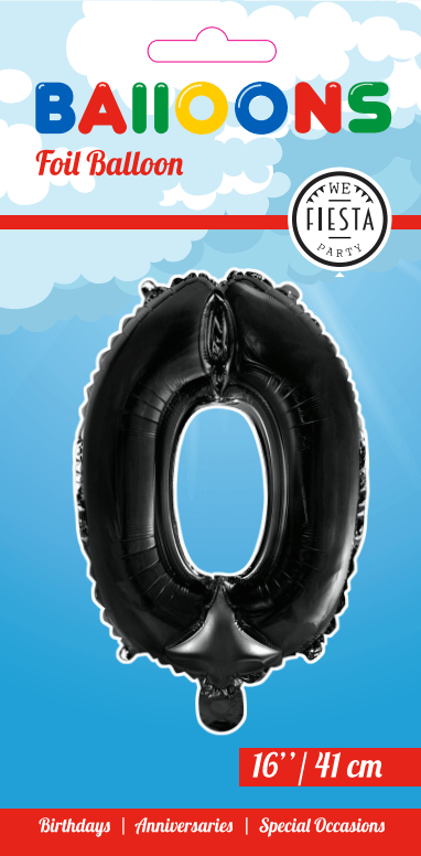 Globo Foil Figura 0 Negro 41cm con Pajita