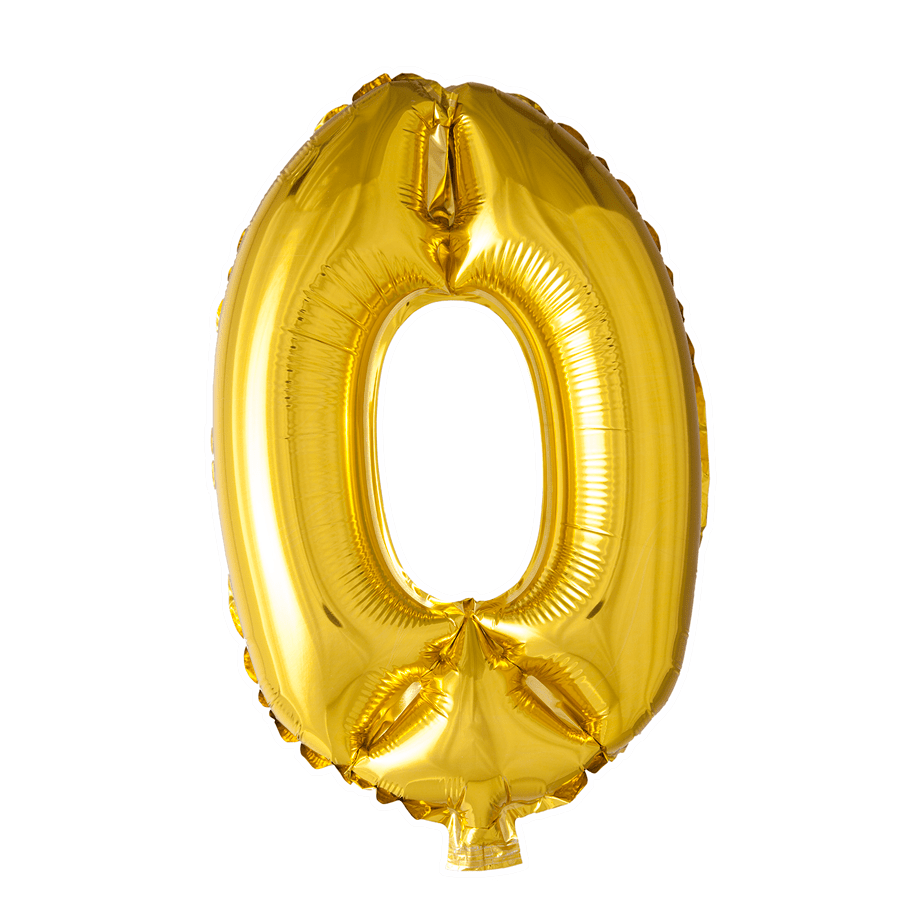 Globo Foil Figura 0 Oro 41cm con Pajita