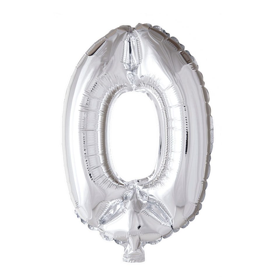 Globo Foil Figura 0 Plata 41cm con Pajita