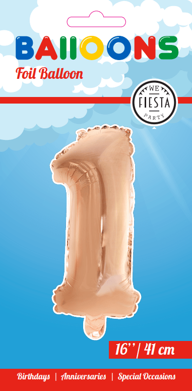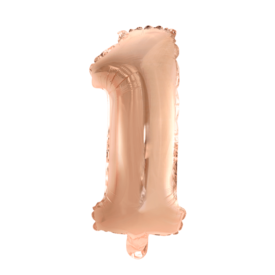 Globo Foil Figura 1 Oro Rosa 41cm con pajita