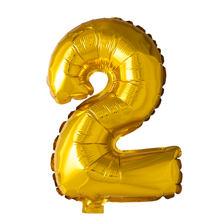 Globo Foil Figura 2 Oro 41cm con Pajita