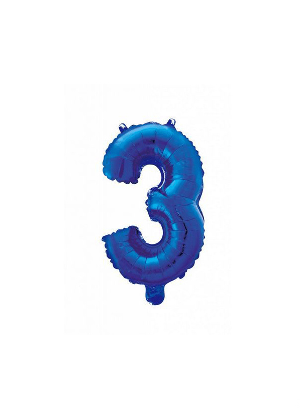 Globo Foil Figura 3 Azul 41cm con Pajita