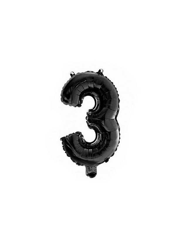Globo Foil Figura 3 Negro 41cm con Pajita